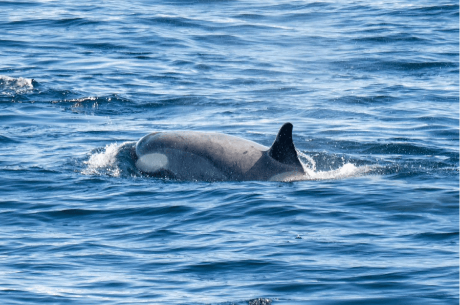 Un altro incontro particolarmente significativo è avvenuto in mare aperto, quando un branco di orche (Orcinus orca) si è avvicinato alla prua della nave della spedizione. Il loro nuoto coordinato e la curiosità dimostrata nei confronti dell’imbarcazione hanno offerto un’ulteriore testimonianza della complessità sociale e comportamentale di questi predatori apicali.