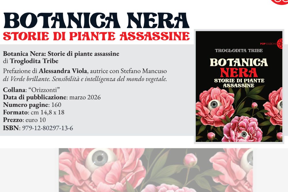 “BOTANICA NERA: STORIE DI PIANTE ASSASSINE” ARRIVA IN LIBRERIA COME UN PICCOLO OGGETTO LETTERARIO CAPACE DI MESCOLARE NOIR, IRONIA E CRITICA ECOLOGICA. IL LIBRO DI TROGLODITA TRIBE, USCITO A MARZO 2026 PER POP EDIZIONI, RIBALTA IL NOSTRO SGUARDO SUL MONDO VEGETALE E TRASFORMA LE PIANTE DA SFONDO INQUIETANTE A PROTAGONISTE ASSOLUTE. NON È SOLO UN DIVERTISSEMENT SURREALE: È ANCHE UNA PROVOCAZIONE CONTRO L’ANTROPOCENTRISMO E CONTRO LA NOSTRA PERSISTENTE CECITÀ VEGETALE