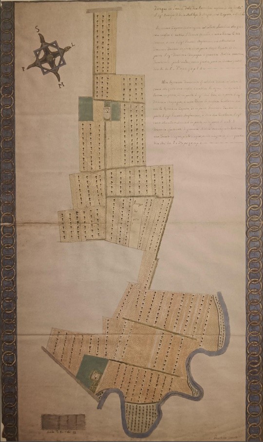 Carta storica: E’ un podere in provincia di Parma (localizzazione incerta) di fine 1600. Si vedono benissimo gli alberi della Coltura Promiscua