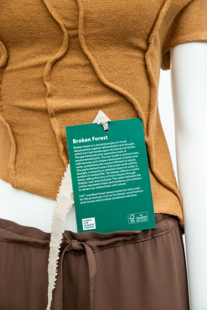 Il concorso “La foresta in un abito” è stato lanciato ufficialmente a febbraio 2025. Questo è tra i più recenti progetti promossi da FSC per il mondo della moda. Ideato insieme a Colombo Industrie Tessili (certificata FSC dal 2020) e Colori Vivi Impresa Sociale, ha offerto ai partecipanti la possibilità di presentare un progetto completo con figurini, disegni tecnici e indicazione dei tessuti utilizzati.