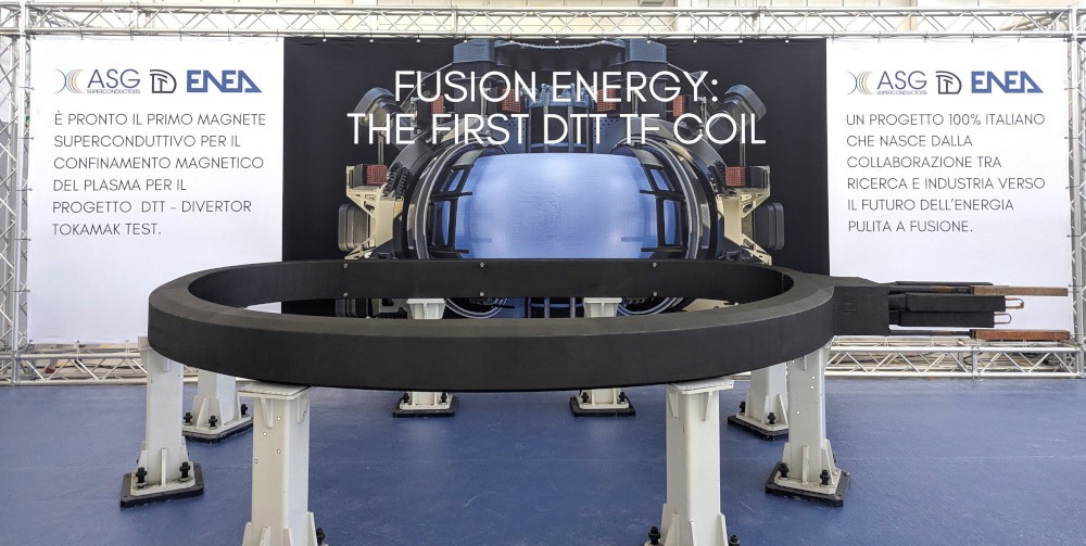 È STATO PRESENTATO IL PRIMO MAGNETE SUPERCONDUTTIVO PER IL PROGETTO DTT, DIVERTOR TOKAMAK TEST. UNA DELLE PIÙ AMBIZIOSE INIZIATIVE ITALIANE NEL CAMPO DELLA FUSIONE NUCLEARE