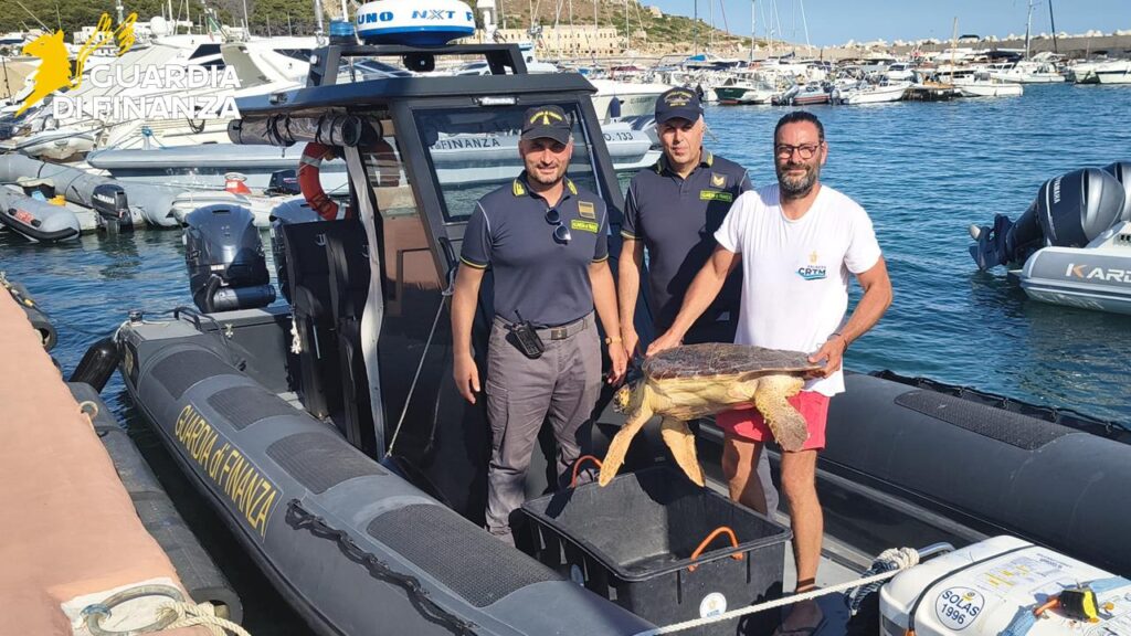 Con grande attenzione, i finanzieri hanno recuperato la tartaruga e l’hanno portata a bordo con tutte le cautele necessarie per garantirne la sicurezza.