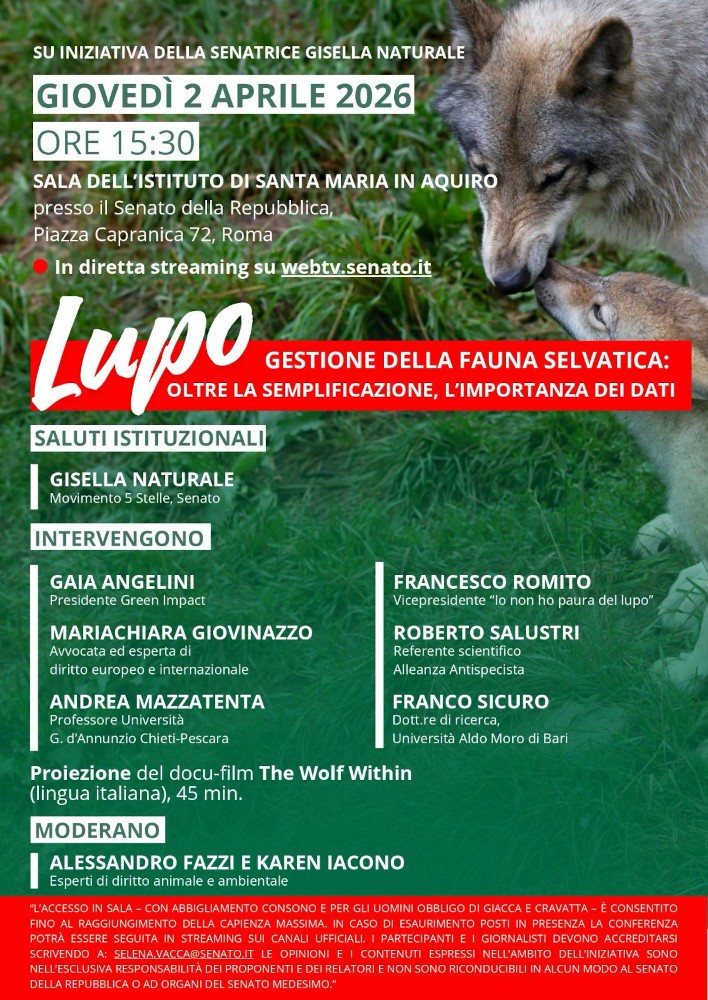 IL DIBATTITO SUL LUPO IN ITALIA SI INTENSIFICA TRA DATI SCIENTIFICI E SCELTE POLITICHE. LE ASSOCIAZIONI CONTESTANO L’IPOTESI DI ABBATTIMENTI E CHIEDONO PIÙ TUTELA E TRASPARENZA. ASSOCIAZIONI AMBIENTALISTE SI RIVOLGONO AL MINISTRO PICHETTO FRATIN. IL TEMA SARÀ DISCUSSO NEL CORSO DI UN EVENTO AL SENATO DELLA REPUBBLICA IL 2 APRILE 2026